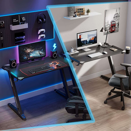 Z1-S Pro Gaming Desk 44.5" Z Shaped Home Office PC Computer Desks Gamer Tables with LED Lights Controller Stand Cup Holder Headphone Hook Free Mousepad for Men Boyfriend Female Gift