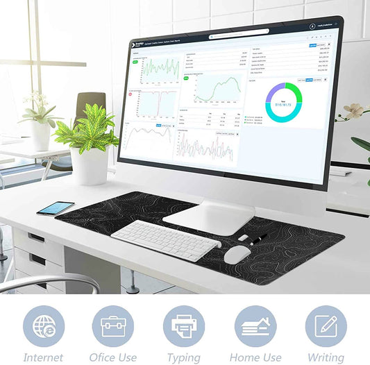 Large Mouse Pad Mat (35X17 In) Extended XXXL Gaming Mouse Pad with Non-Slip Rubber Base,Background Topographic Map Lines Contour Geographic for Gaming Office Laptop Computer Men Women